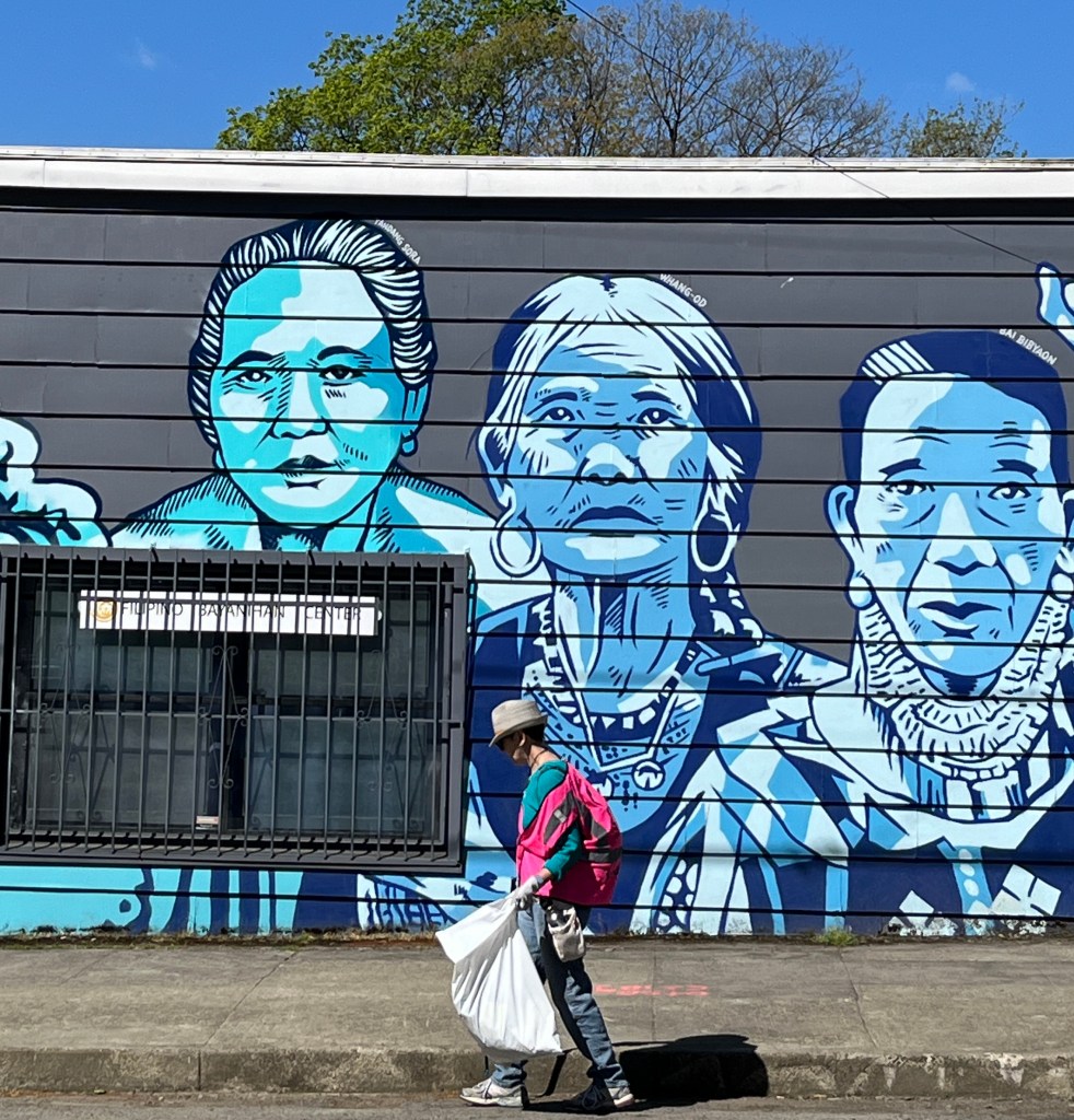 We walked away from the school, picking up all sorts of wrappers, bits of paper, and of course, cigarette butts. We got to see the area’s many murals. This one, perfectly enough, shows the strength of women.