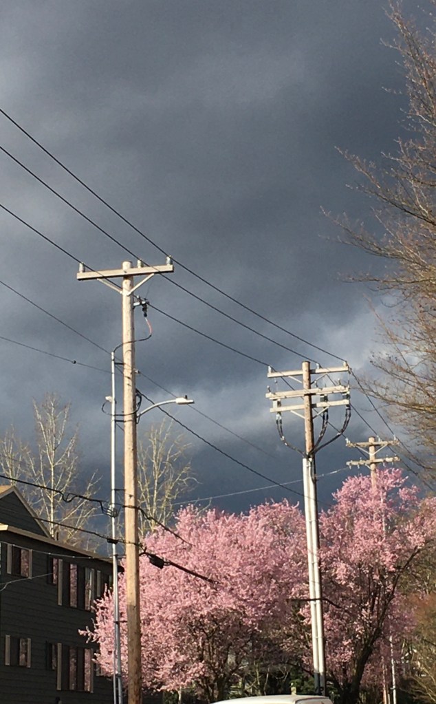 And we saw these inky clouds over the bright pink trees, and knew that our sunshine would be short lived, that this coming week was going to be wet and cold.