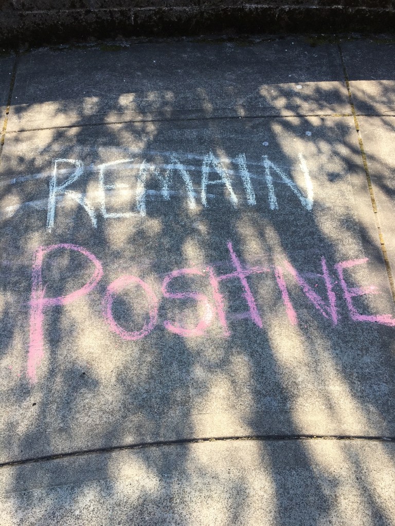 And all over the neighborhood, we are noticing that neighbors are reminding each other that they are loved. We find notes posted on poles and chalk writings that make us smile and feel connected. Even when I’m not out in it, I love our neighborhood.