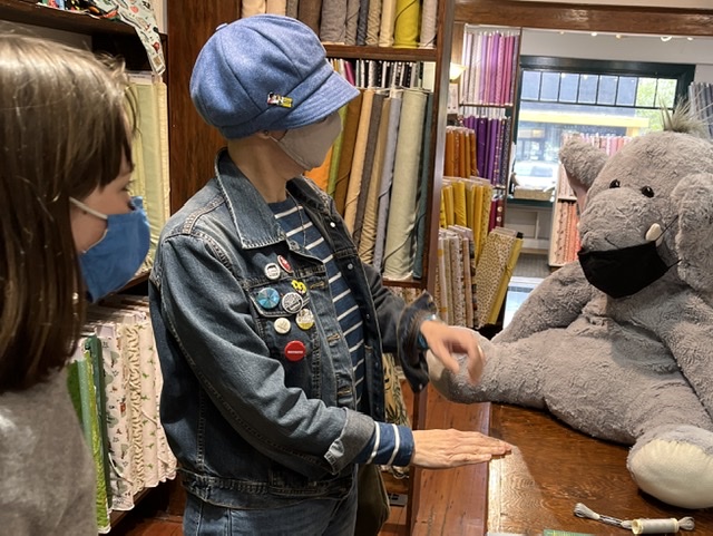 With the typewriter carefully tucked in the car, we went by Cool Cottons to find some matching fabric for Elephante. You want his tummy fur replaced with a smooth cotton, because you use him as a pillow. We found the fabric and thread, but the sewing will wait for tomorrow!