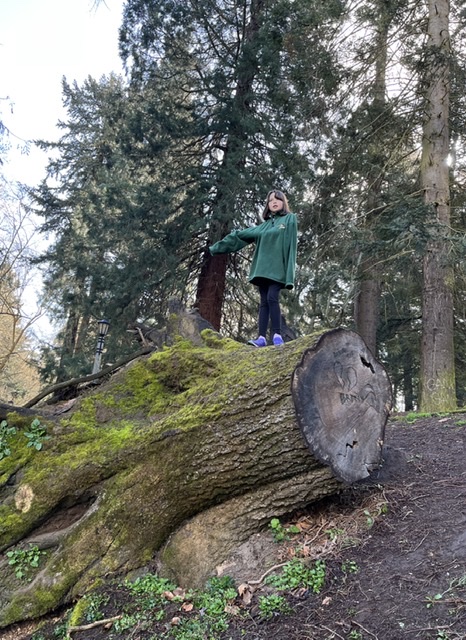 Then we walked over to Laurelhurst Park. You climbed right up on the big oak tree that fell last year. I had never looked at it from this angle, down in the ravine. It looks very tall!