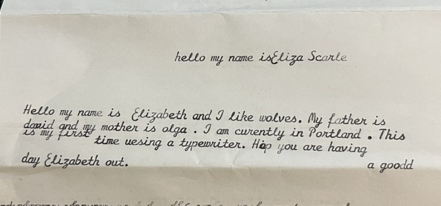 You found one with cursive keys and enjoyed it very much. You got the hang of it quickly, and even wrote a personal paragraph. But we left that one in the shop.
