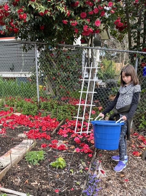 You and your Daddy came to visit us last week! And you got here HOURS early. You caught us in our pajamas! Soon, however, I got dressed and you and I were off on an adventure. I showed you my vegetable garden, and you helped me pick up the camellia blooms that fall into my plot.