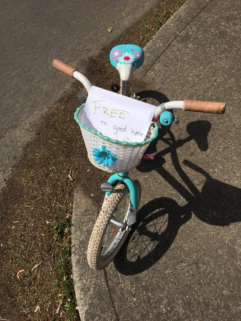 Auntie Bridgett and I even got out for a bit of a walk. We avoided the park, because we had seen dozens folks heading that direction and knew it would be too crowded to safely social distance. We walked through our Sunnyside neighborhood and enjoyed seeing flowers, kids on bikes, and even a “Free to a good home” bicycle sitting on the corner. I hope it finds someone nice.