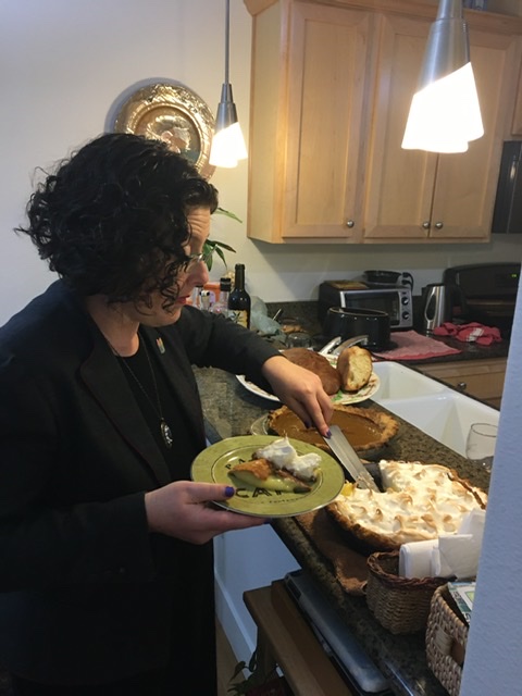 When Auntie Katie and the Cousins came, they brought two delicious pies and a turkey shaped challah bread. What a feast!
