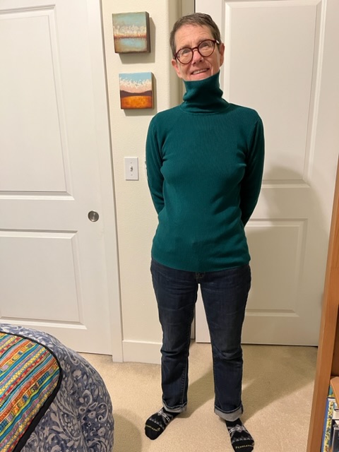 Layer #2. Turtleneck sweater and jeans over the underwear.