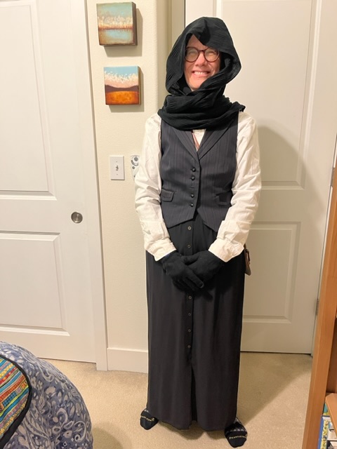 This weekend I volunteered at the Tour of Untimely Departures in Portland’s Lone Fir Cemetery. The skies were clear, but it was forecast to be in the low 40s…. So I knew I needed layers. Remember, these are not three separate outfits. This was all on me at the same time.