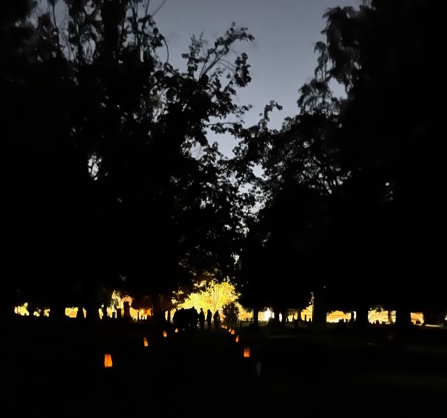 At 10:00, when the last of the visitors had left and the exhausted actors headed off, I helped gather the luminaries and Auntie Bridgett and Grandpa Nelson came to walk me home.