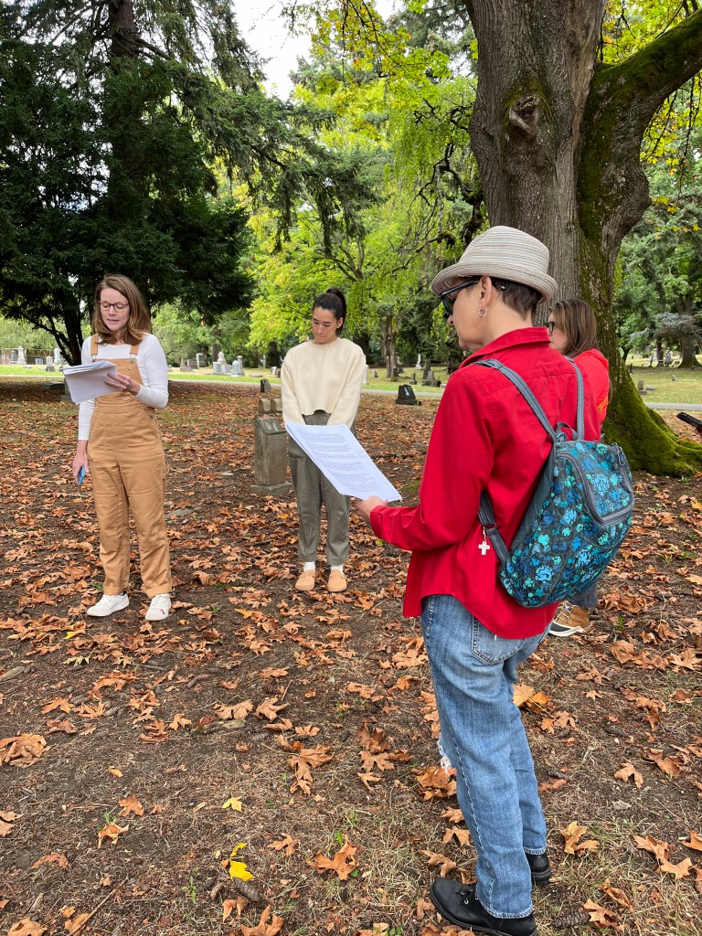 At the end of this month, I will volunteer to help the Lone Fir Cemetery with its Tour of Untimely Departures. And this week, we had our first walk-through. Our leaders of the day were Margaret and Katie.