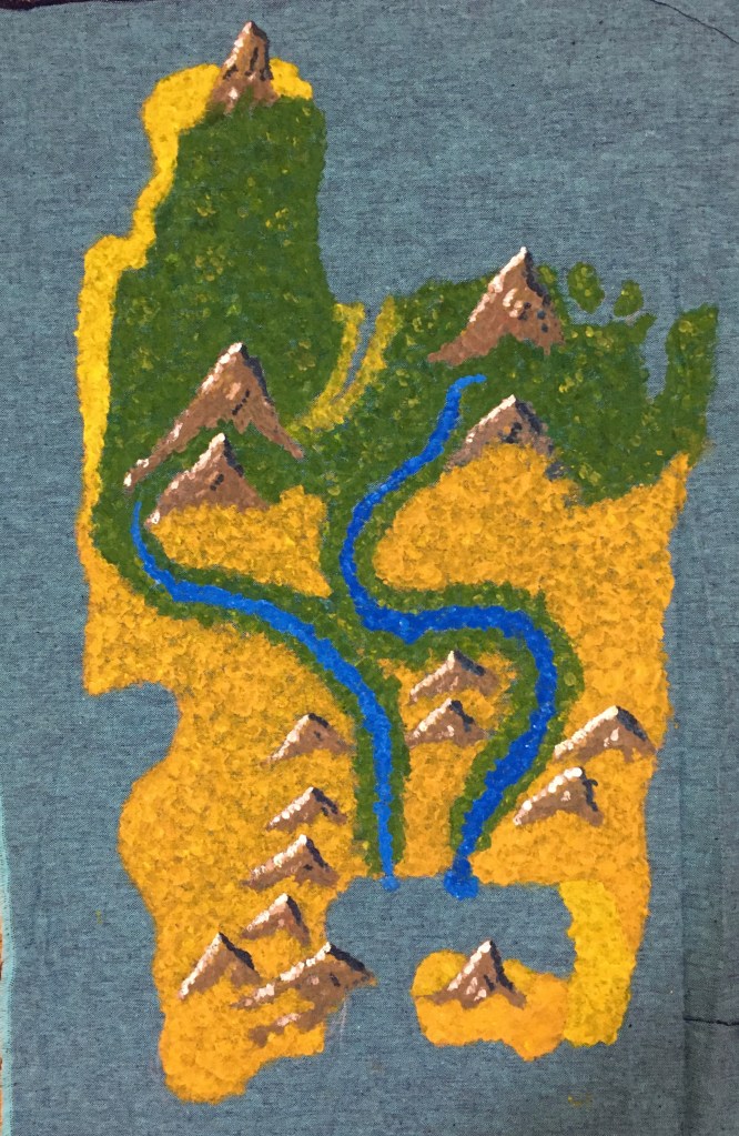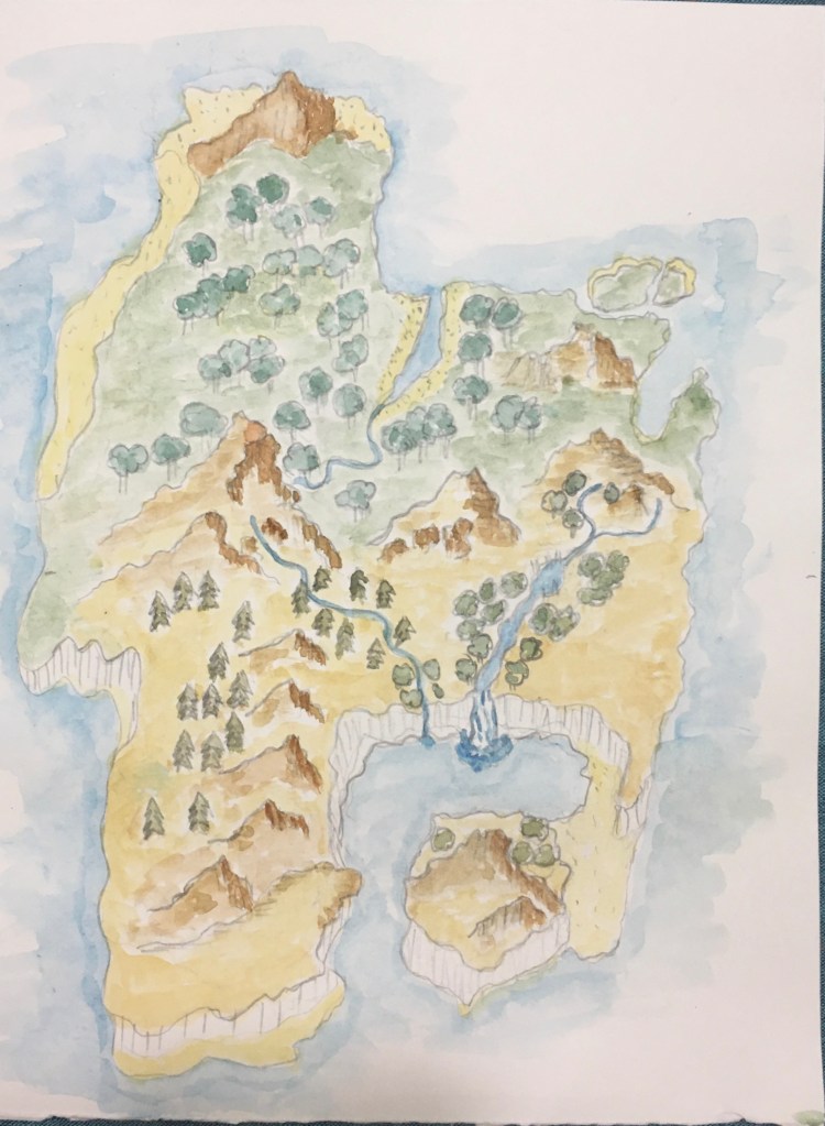 It started out more like RLS’s desert island, but since I knew I was going to spend a lot of mental time there, I wanted it to be greener and prettier. Billy Bones went mad for a reason, you know, and I don’t need more crazy-making. I need less. So I added rivers, some real mountains, and a nice lush rain forest.