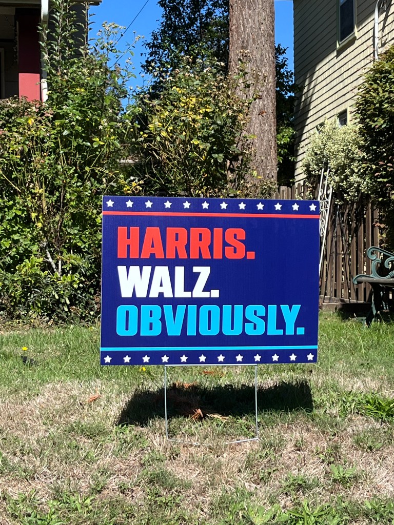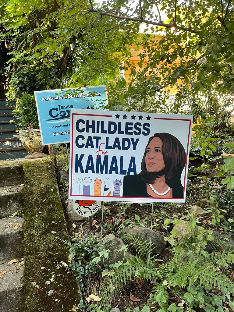 And, since Portland tends to be mostly Democrats, there are lots of signs up for Kamala Harris and Tim Walz.