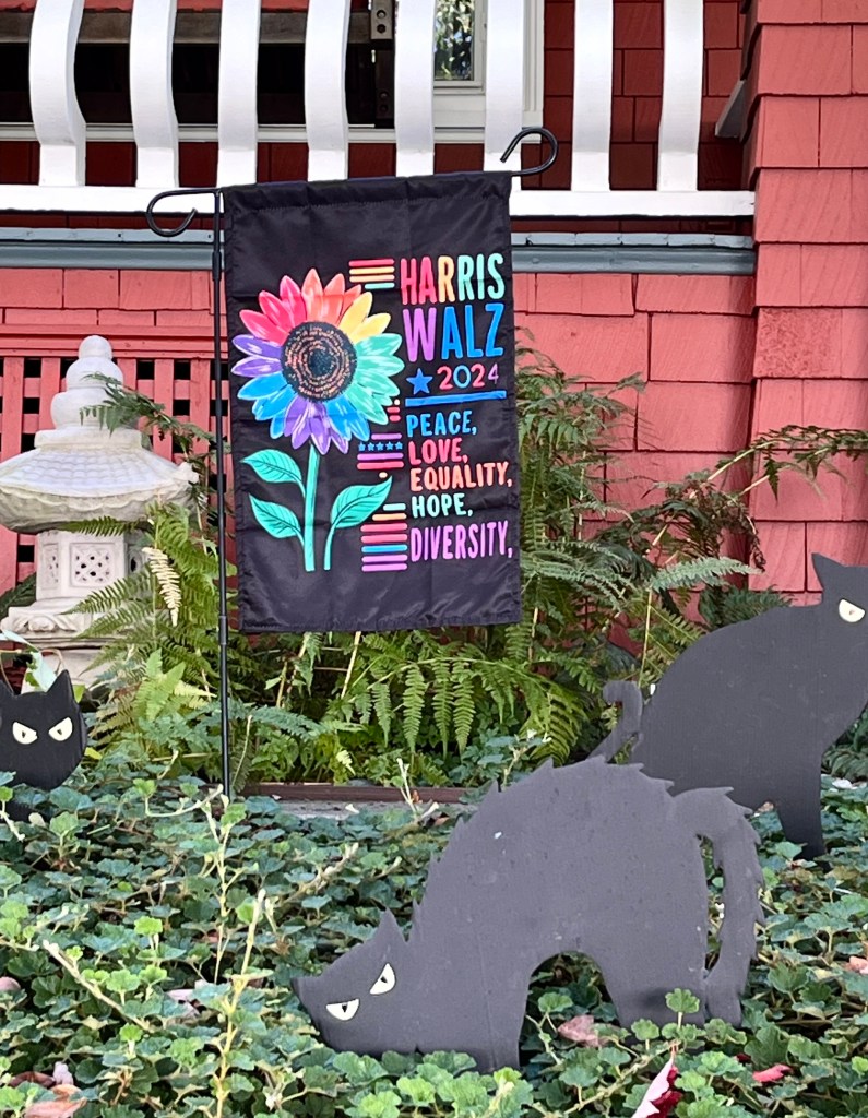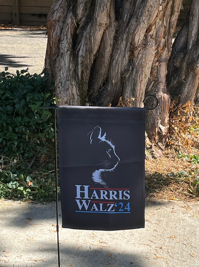 The lawn signs are the most interesting bunch I’ve seen, and I’ve been watching election signs since 1970 . I enjoy the artistic feel, the variety, and the frequent use of cat pictures in this year’s batch.