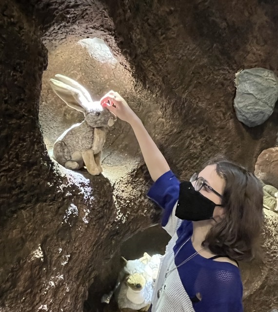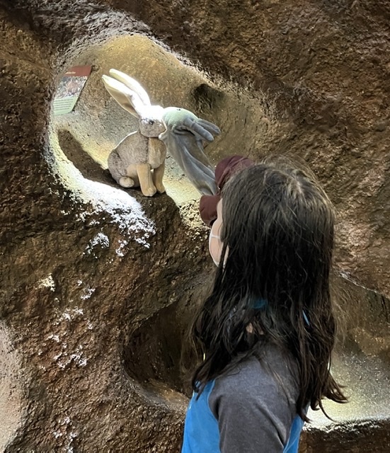 But as soon as we were inside, both kids found fun things to do. In an ’underground’ display, we found niches with puppets of skunks, rabbits, snails, and weasels. I sat on the stairs and enjoyed the show as almost 11 year old Kes and almost 13 year old Jasper played like little kids.