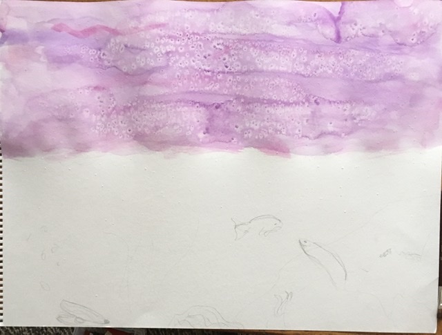 I wasn’t totally happy with my brush strokes, since I was using the wrong brush. In the months since we’ve done any watercolor, I have misplaced my soft brushes! Still, I pushed through.