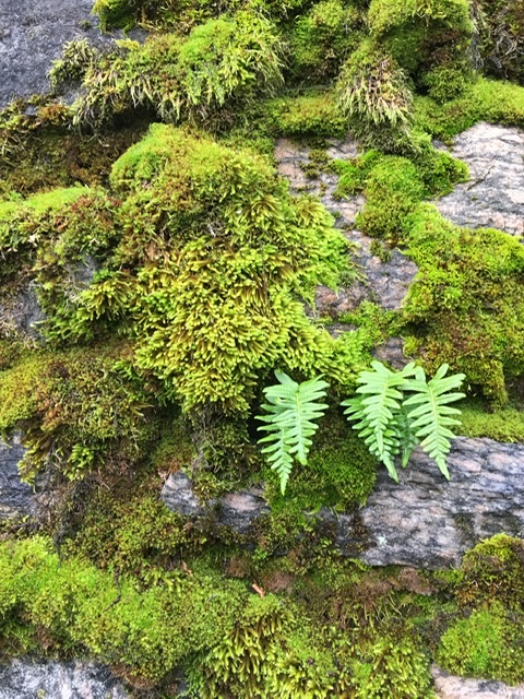 Besides being beautiful in their own right, the mossy walls, to my fanciful brain, look for all the world like fairy houses. A few little caves, some nice sunny porches, and there is a whole fairy community right there.
