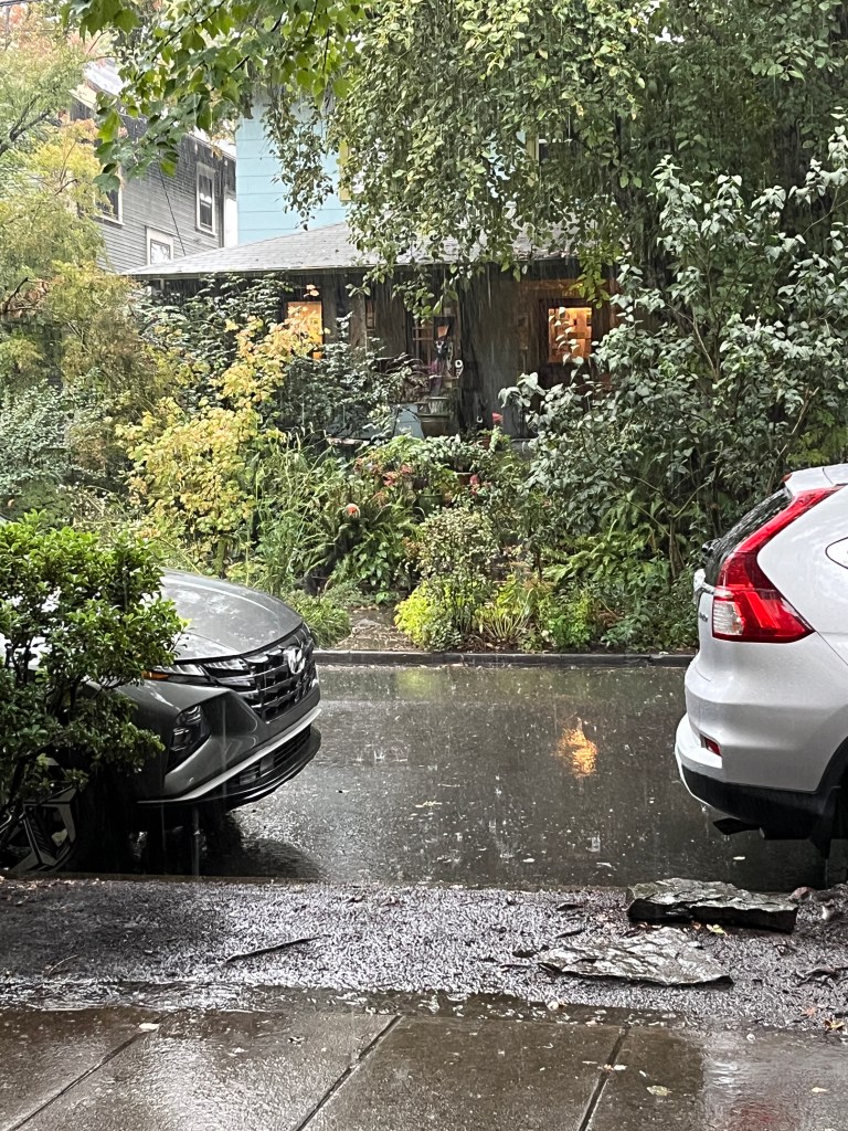 In our neighborhood, this means lovely rippled rivers as gutters flow into bioswales. The bioswales hold the rainwater and let it filter slowly into the aquifer, keeping our Willamette River clean.